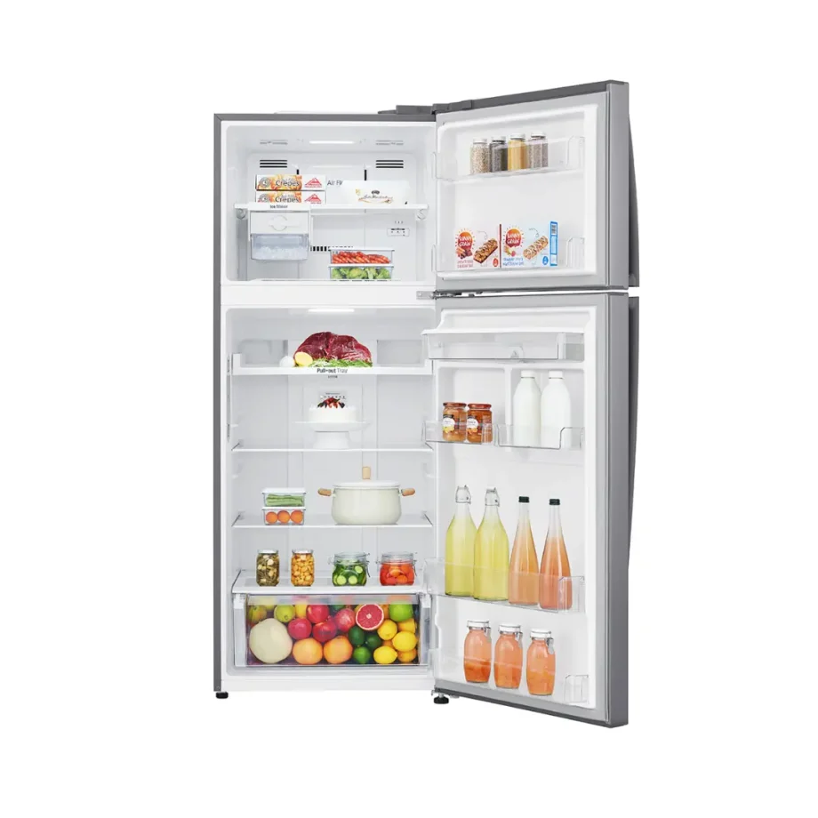 The LG Top Freezer Refrigerator 438L WD is designed to deliver exceptional cooling performance, energy efficiency, and convenience for your home. Featuring advanced LINEAR Cooling™ technology, it maintains a consistent temperature throughout the fridge, ensuring your food stays fresh for longer. The innovative Smart Inverter Compressor not only saves energy but also operates quietly and efficiently, adjusting cooling power according to the amount of stored food. With Door Cooling+™, cold air is distributed more evenly, cooling faster and reaching every corner, including the door area, to keep beverages and frequently accessed items at their optimal temperature. The spacious 438-liter capacity provides ample storage for all your groceries, while the integrated LED lighting offers bright and energy-efficient illumination, making it easy to locate items even in low light. For added convenience, the refrigerator comes with a built-in water dispenser, giving you easy access to fresh, chilled water without opening the door, helping maintain the internal temperature and save energy. Its modern design with a sleek finish complements any kitchen décor, while its robust build ensures long-lasting performance. Whether for a large family or frequent entertainers, this LG refrigerator offers the perfect combination of style, functionality, and reliability for everyday use.
